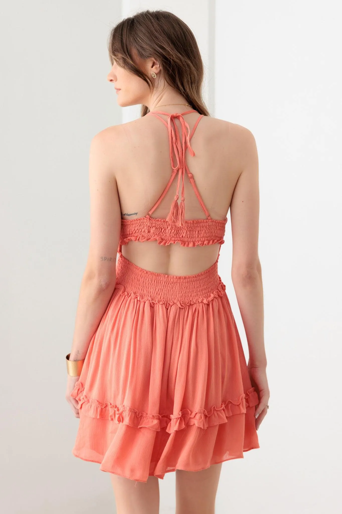 Embrace your adventurous side with our Lace Open Back Ruffle Tiered Dress! Featuring stunning lace details and a bold open back, this dress will turn heads and make you stand out from the crowd. Perfect for any special occasion, dare to be different in this daring and elegant dress!